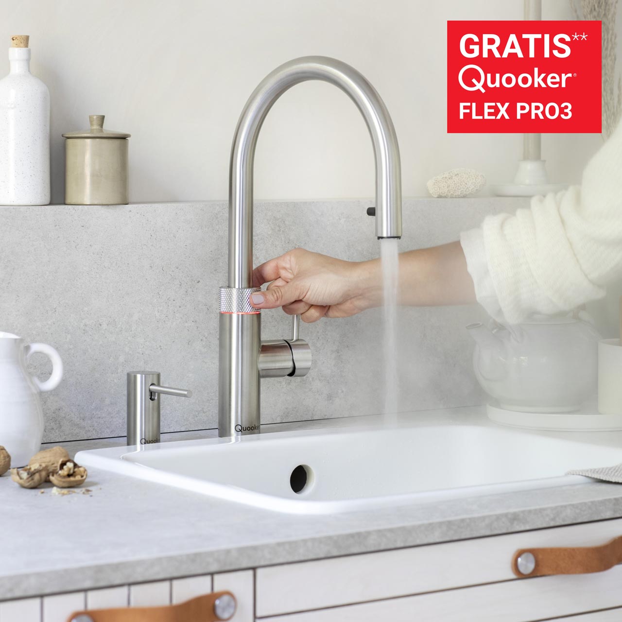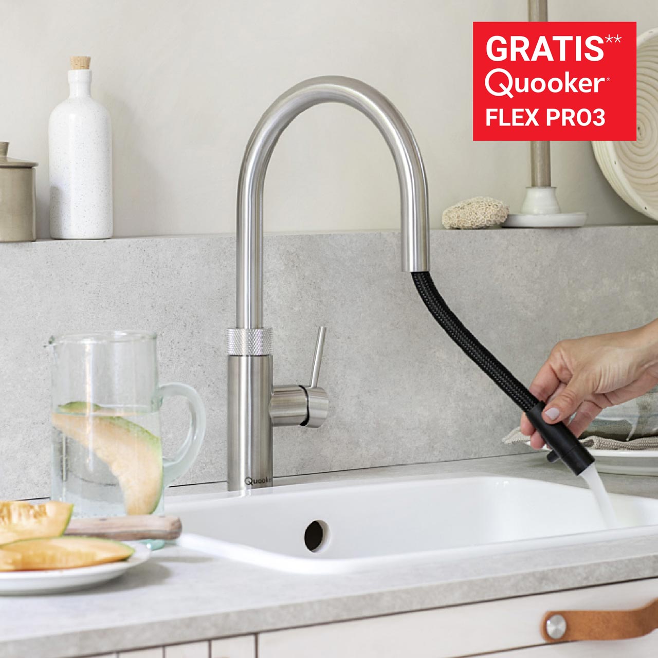 ** Gratis Quooker Flex PRO3. Nur gültig auf frei geplanten Küchen ab einem Auftragswert von 9.900,- Euro. Gilt nur für Neuaufträge. Nicht kombinierbar mit anderen Aktionen, keine Barauszahlung möglich.