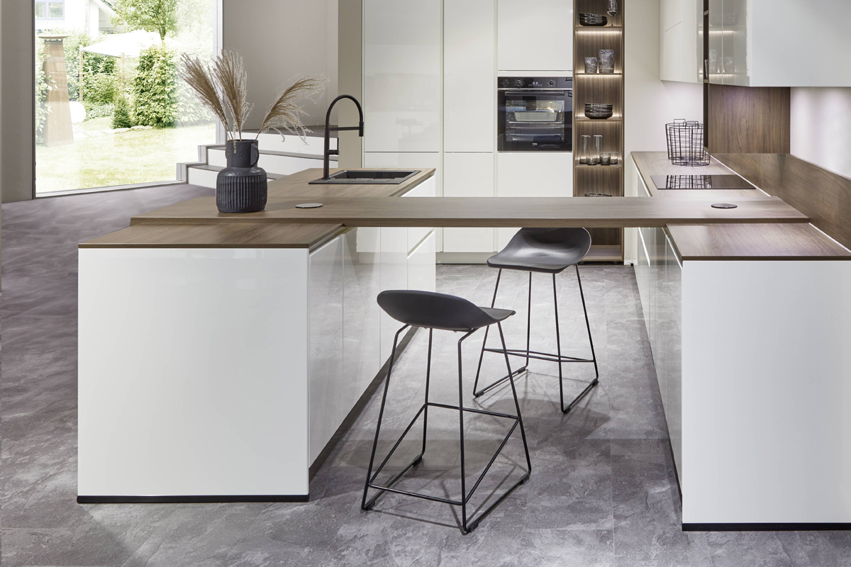 Inklusive Einbaubackofen Edelstahl Laurus LEB3 Energieeffizienzklasse A, Glaskeramik Kochfeld Laurus LCA600, Designesse Edelstahl / Schwarzglas Airforce F134-90 S4 BK Energieeffizienzklasse C, Kühlschrank Laurus LKS88E Energieeffizienzklasse E, Einbauspüle Edelstahl Rodi Okio Line 85 Deep, XL-Schränken, Wandschränken mit Klappe, Anstelltisch.